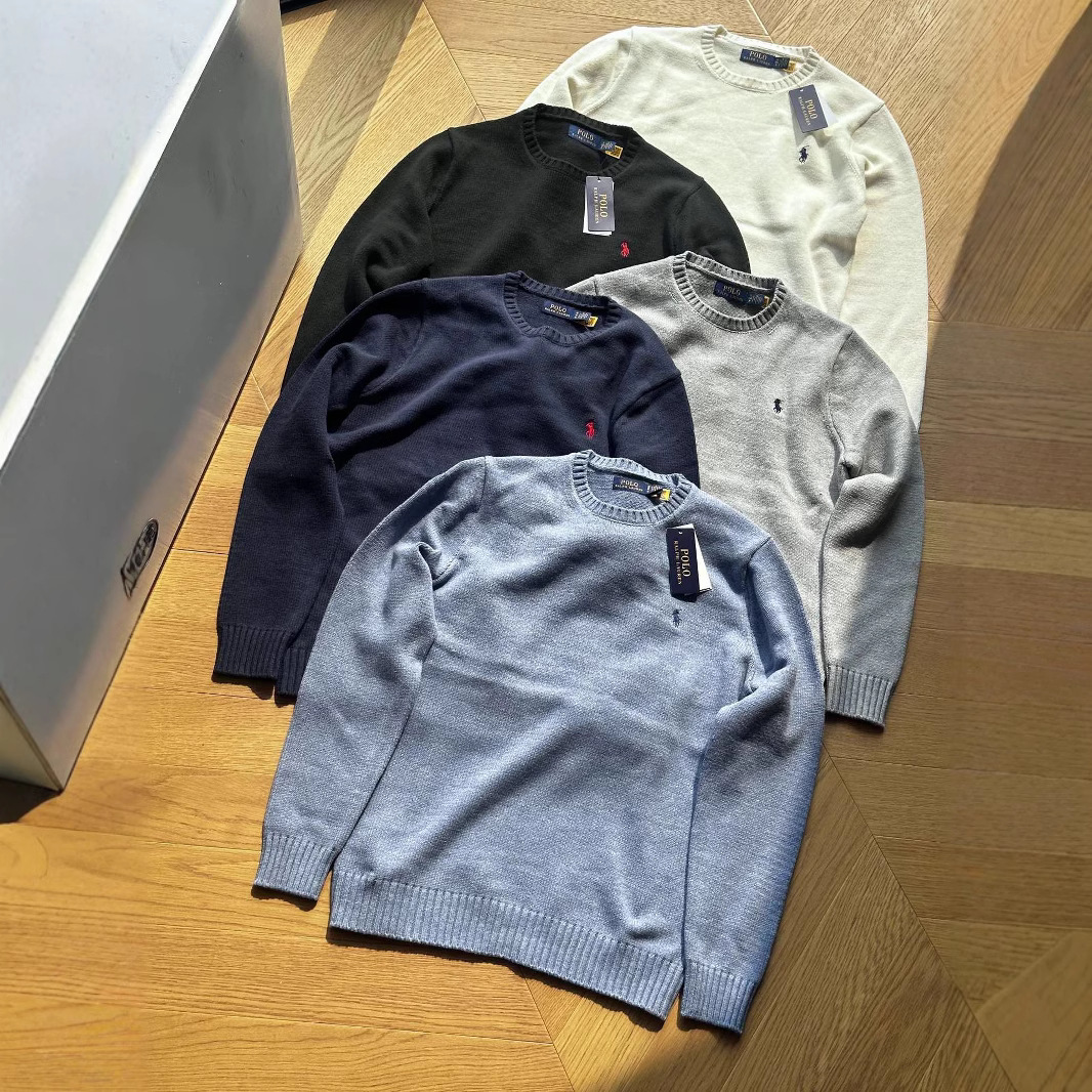 越境供給 RL ラフ FW22 無地ロゴ刺繍ラウンドネックプルオーバー長袖セーター冬のカップルスタイル