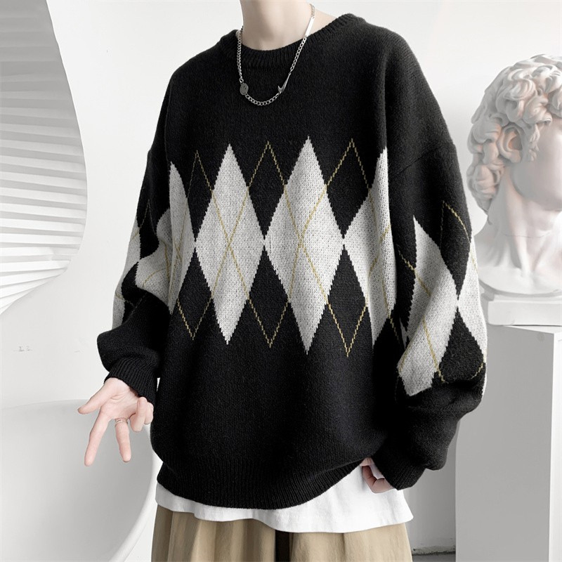 As清河韓系男性セーターニットカジュアルゆるいレトロなコート韓国版トレンド高級感麻模様