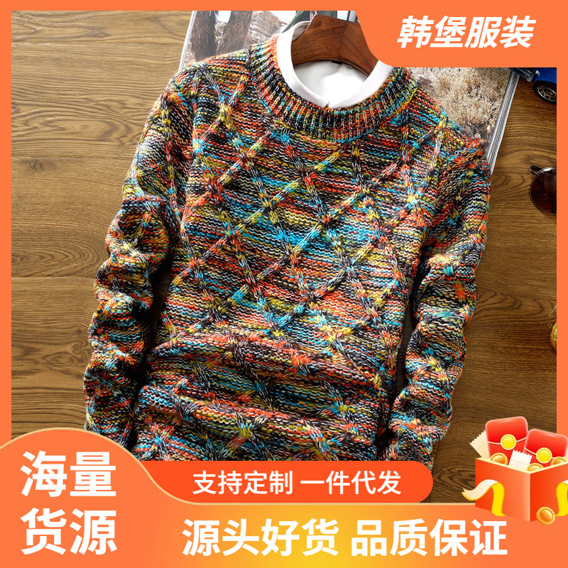 国境を越えた対外貿易代発男2024秋冬ワイド版セーター男ファッショントレンド丸首セーター男青年ニット