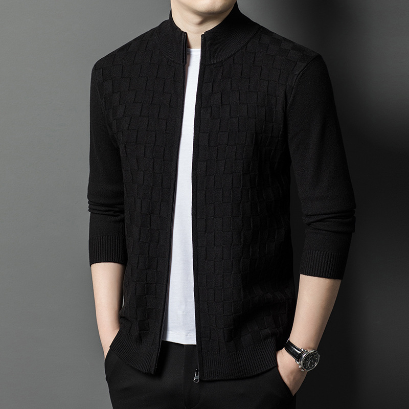 2024外国貿易秋冬モデル男性ファッショントレンドセーターニットファスナー立襟カジュアル厚手カーディガンコート