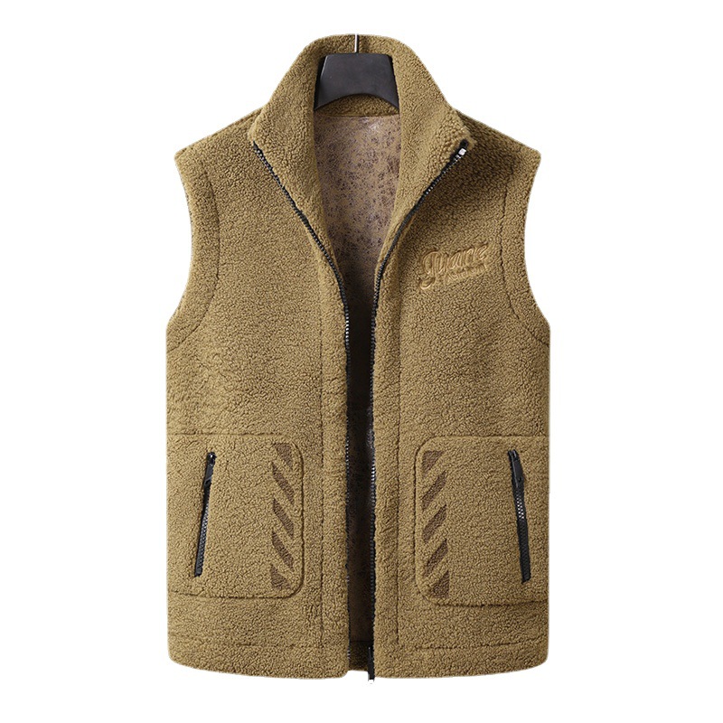 フリース男性馬甲秋冬カシミヤカーディガンコートカジュアルベスト保温馬クリップゆるいサイズの上着男