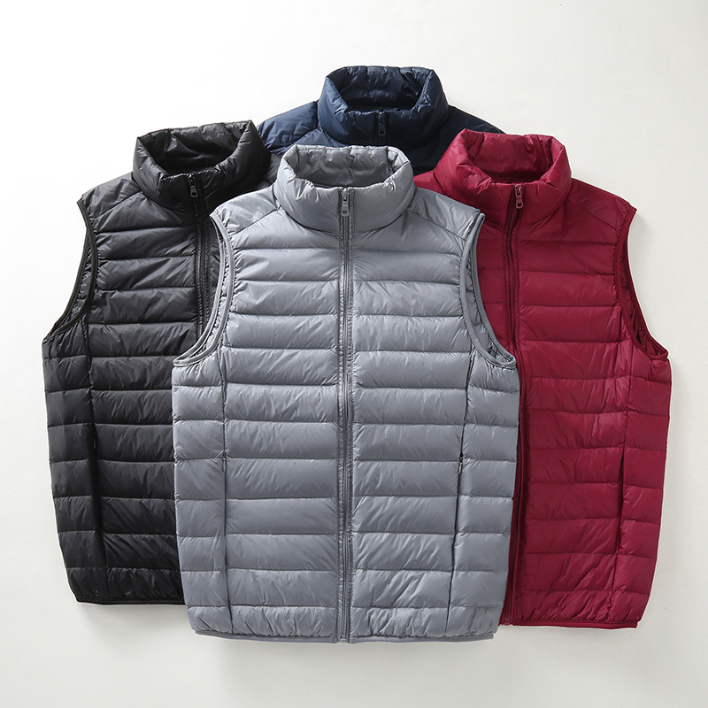 2025年メンズダウンベスト、スタンドカラーダウンジャケット、裏地なしベスト、トレンドのチョッキ、流行の万能アイテム