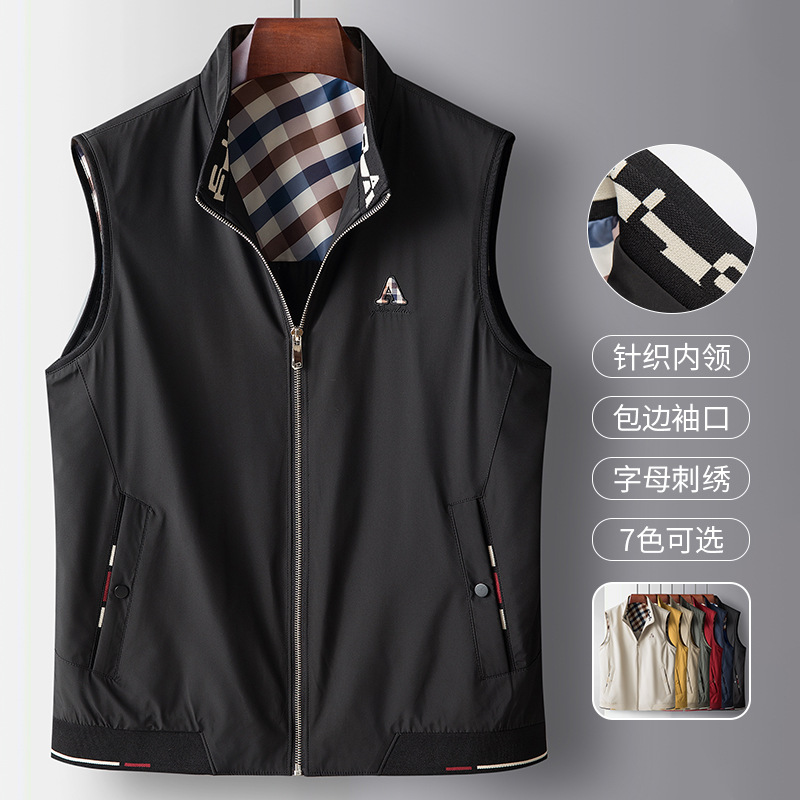 2024新型男性の色合わせ馬甲は保温袖なし秋冬金馬甲立襟馬クリップを厚くした