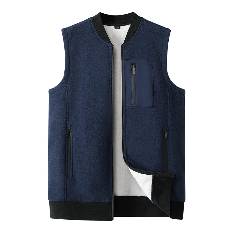 フリース馬甲男性モデル秋には保温袖なしベスト純色立襟快適粒パイルジッパーコート