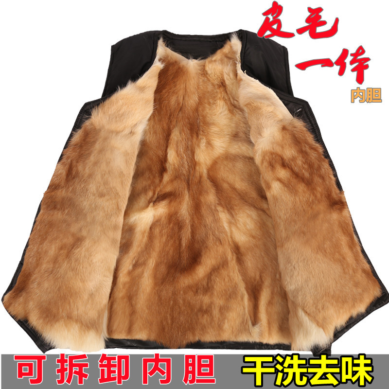 毛皮一体馬甲男羊毛カン肩中高年真羊皮ベスト父装保温ベルベット厚手馬クリップ