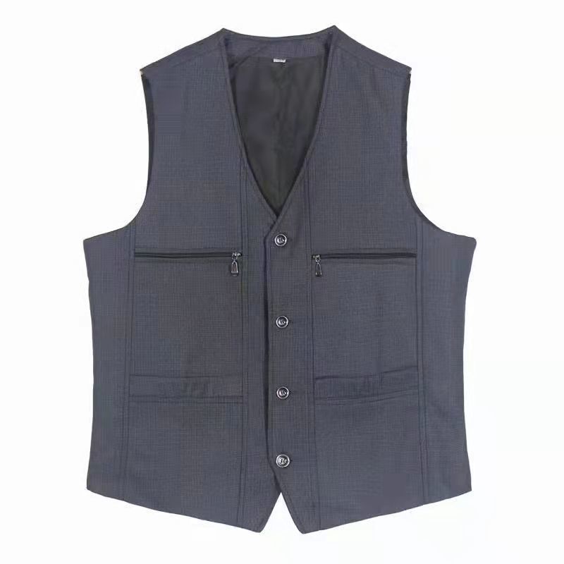 春秋棉马甲中老年男士保暖背心多口袋V领爸爸坎肩外穿工装上衣秋