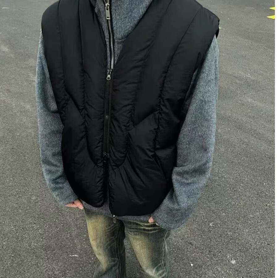 アメリカの高街のカジュアルでゆったりした不規則なベストコートの男性秋冬のデザイン感があります。