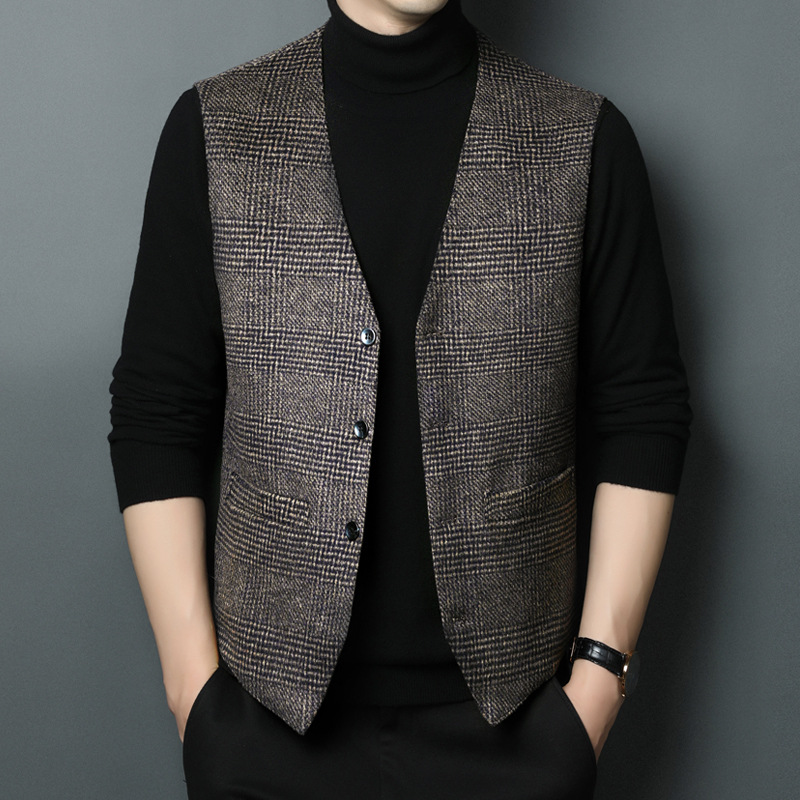 2024新型羊小毛馬甲男性秋冬外着韓国版保温馬甲中高年カジュアルコート