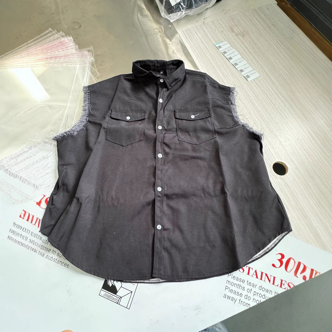 夏の新型純黒色カウボーイ馬甲レジャー日常男性モデル馬甲ファッション