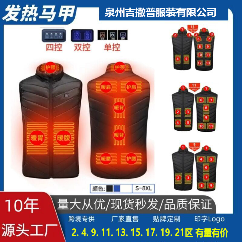 越境新単控9区発熱馬甲冬知能恒温電熱ベストUSB安全保温加熱服男