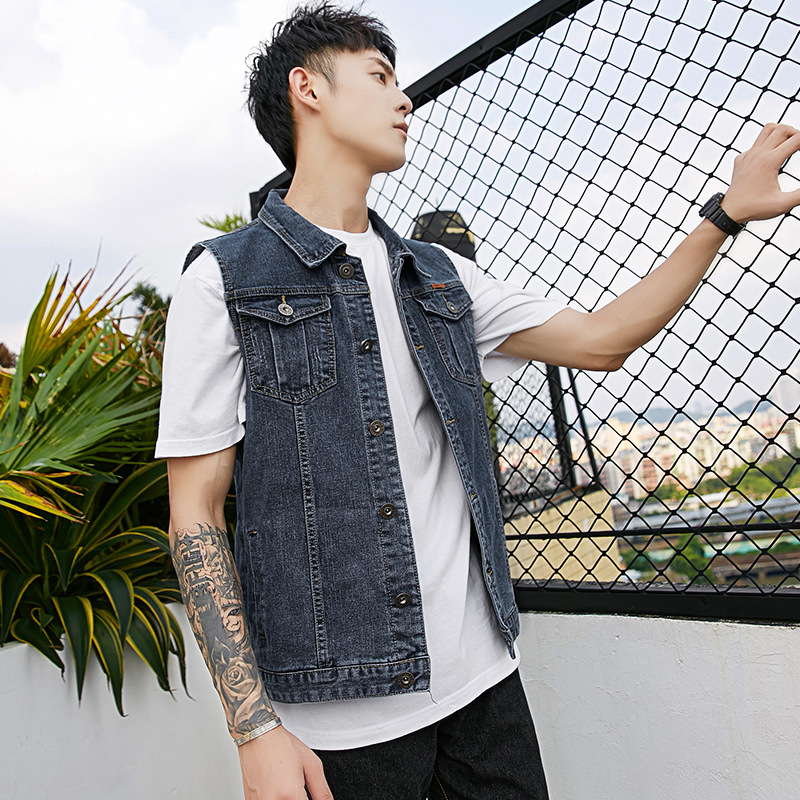 デニムのジャケットの男性の韓国版のゆったりしているノースリーブの馬はベストを挟みます。