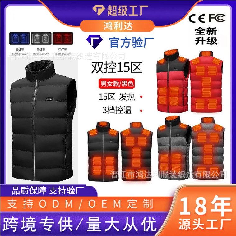 十五区知能発熱馬甲冬男女タイプusb加熱ベスト恒温十五区電熱馬クリップクロスボーダー
