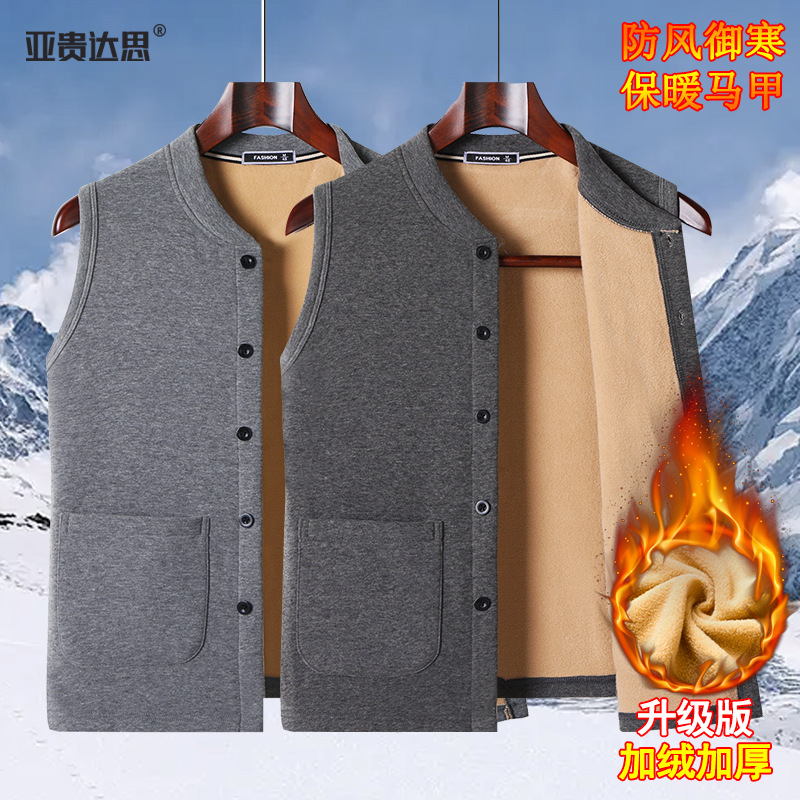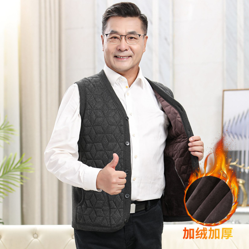 子羊の毛の馬甲の男性の秋冬の中高年のベルベットの厚い保温のベストのお父さんのノースリーブの肩の中で馬甲を着ます。
