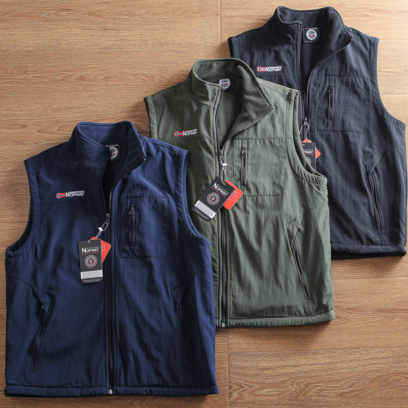 北鴎戸外猛品秋冬男性防風防水ベルベット保温立襟カジュアルベスト