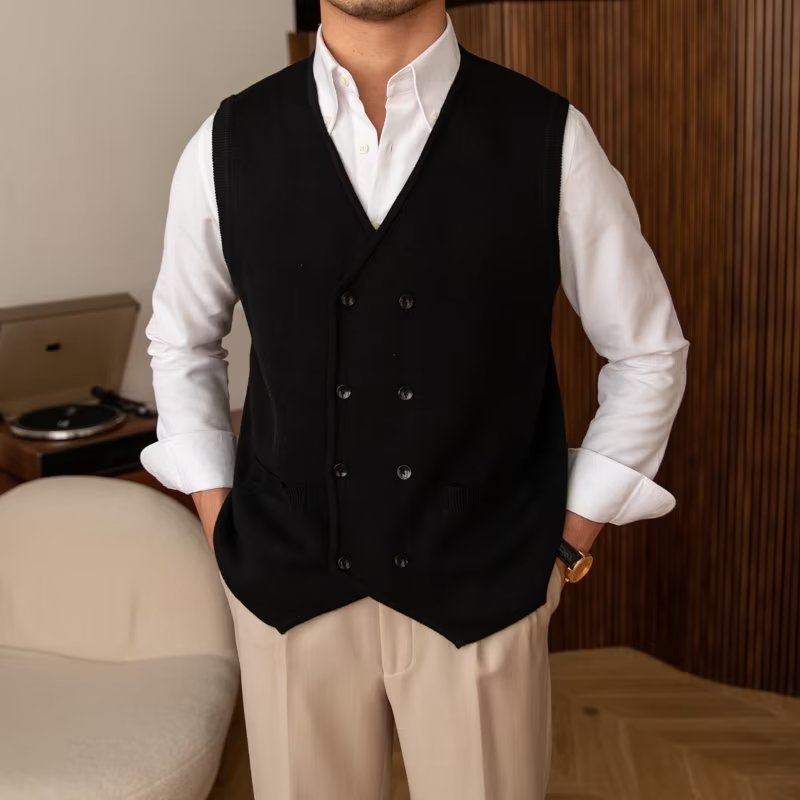 2025 秋冬多用途ダブルブレストニットノースリーブベスト英国パーソナライズベストスリムメンズセーターベスト