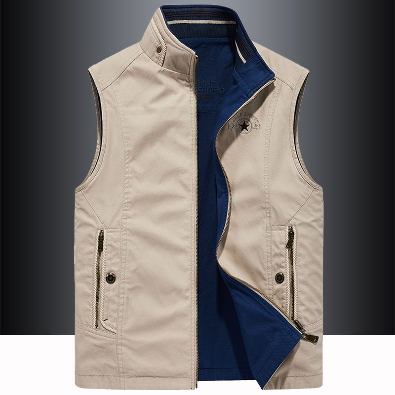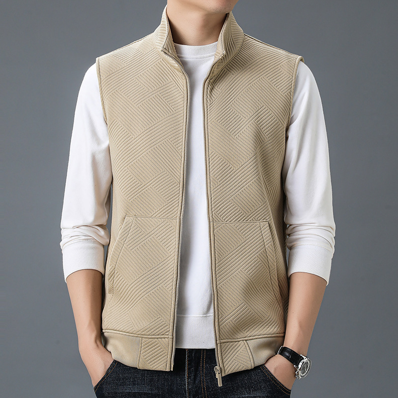 2025春の新型ベストの高級男性コートの肩のお父さんのベストの立襟の馬は袖なしのファスナーの襟を挟みます。