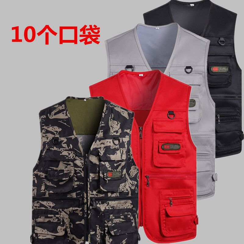 中年男性のベスト春と夏の薄いメッシュマルチポケットベストカジュアル写真撮影釣り赤いベストお父さんベスト