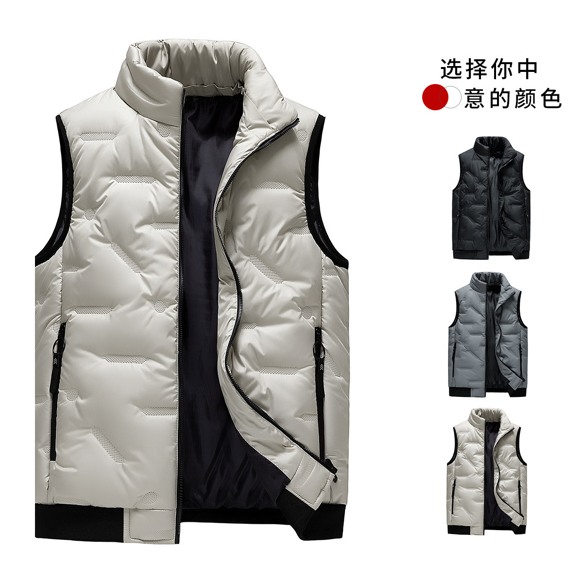 新型B字綿衣馬甲男装パン服綿衣袖なし馬甲は保温馬を厚くしてジッパーポケットを挟んで立っている