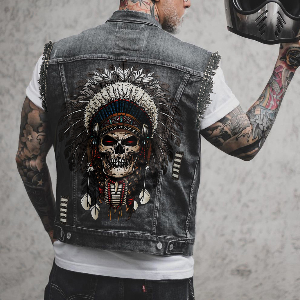 Amazonメンズデニムベストプリントトライバルスタイルトップス2506の国境を越えた直接供給