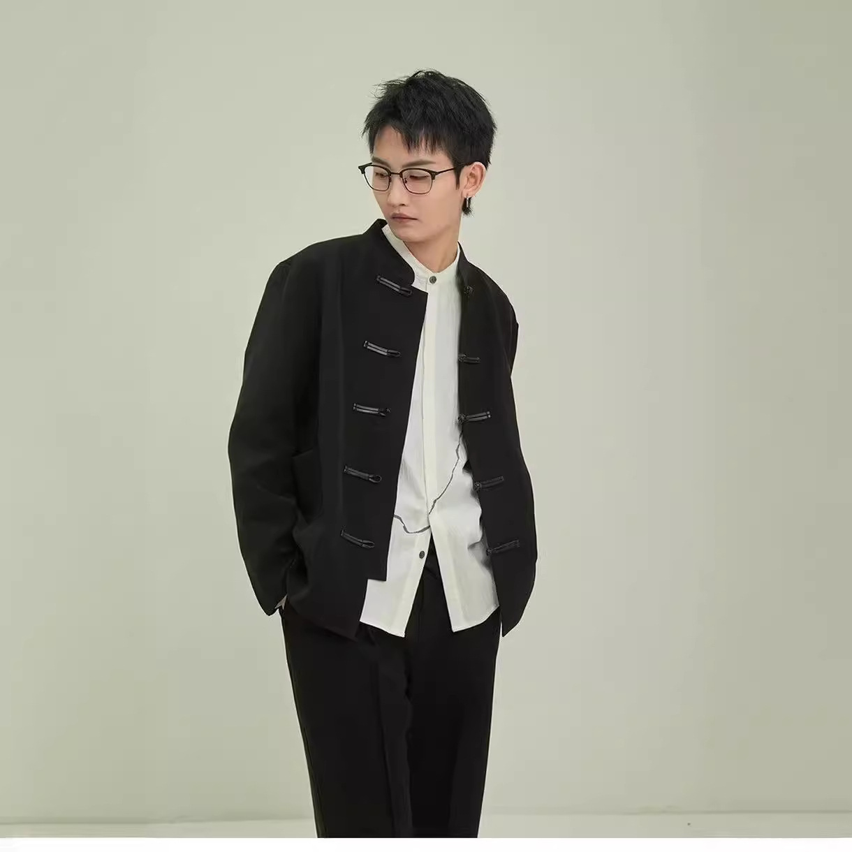 カジュアルなレトロな薄いタイプの新しい中国式の立襟のコートの男性と春秋の新型の高級感の黒色の中山のスーツの上着の潮