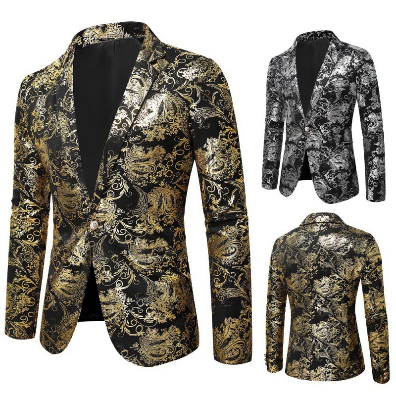 Amazonクロスボーダーヨーロッパコードメンズビジネスカジュアルホットスタンピングスーツメンズホストステージパフォーマンススーツジャケット男性用