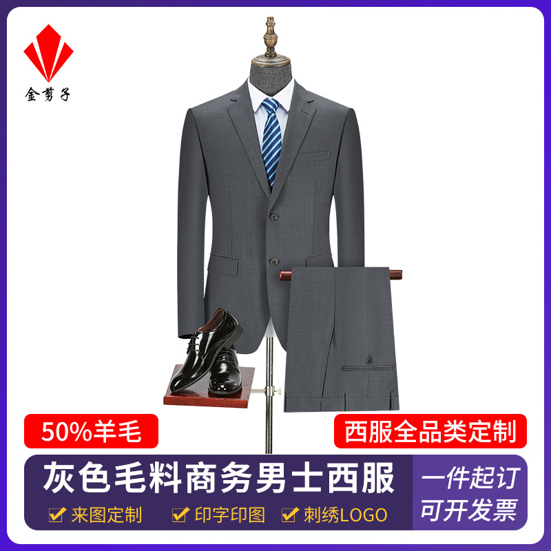 50% ウールスーツ男性グレービジネススーツカスタム结婚式スリムドレスジャケット职业正装作业着