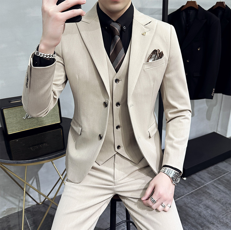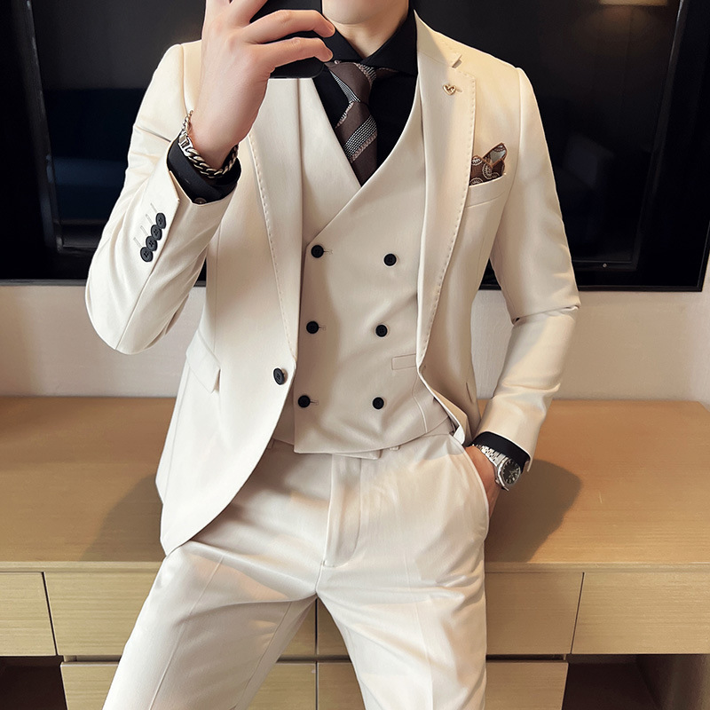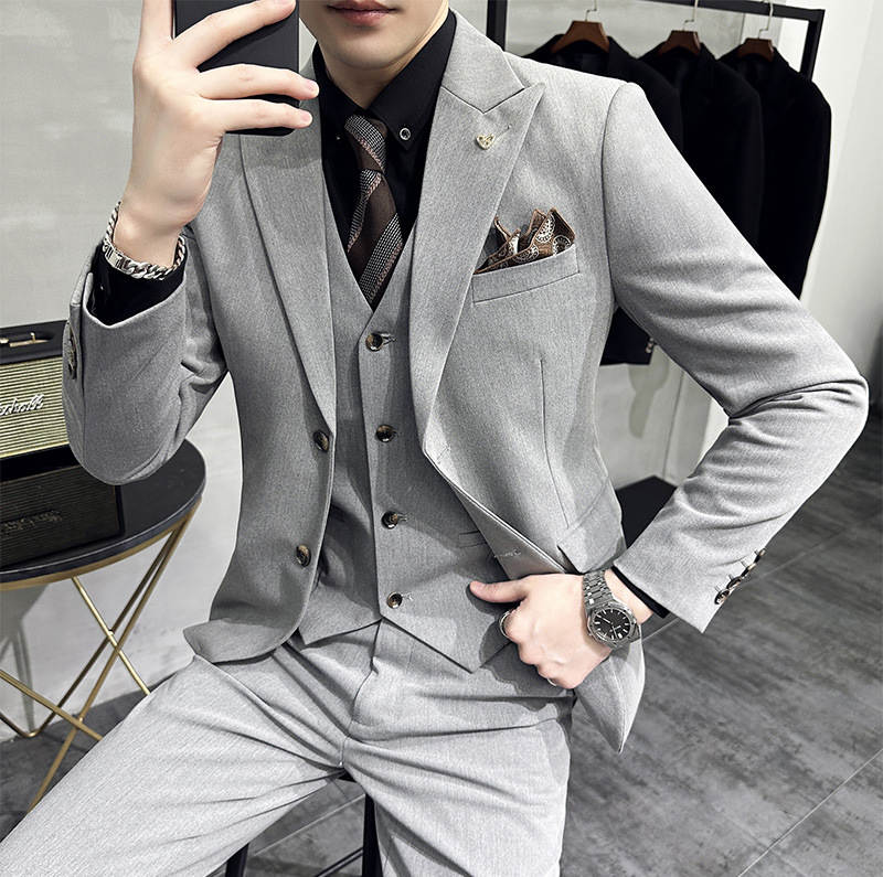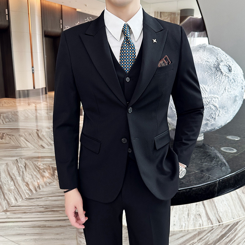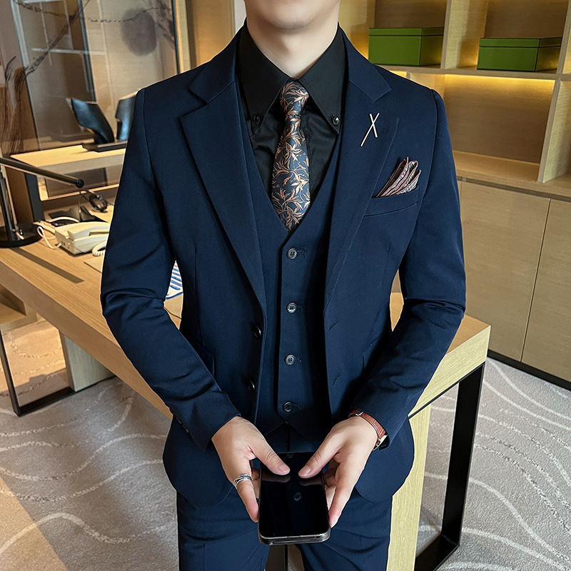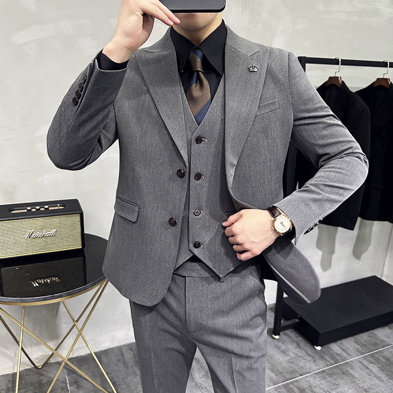 対外貿易卸売り男性スーツ3点セットビジネスレジャー1粒ボタンスーツセット宴会ドレス現物正装