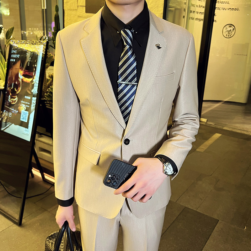 外国貿易現物男性スーツ三点セットビジネス出勤正装新郎ドレス二粒ボタンスーツセット代理販売