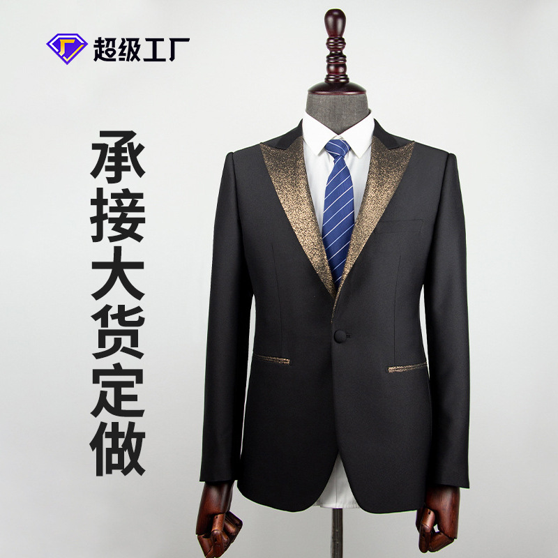 カスタム職業服装男性スポット模造毛色織微弾黒一ボタン男女男性スーツと合わせてカスタマイズ