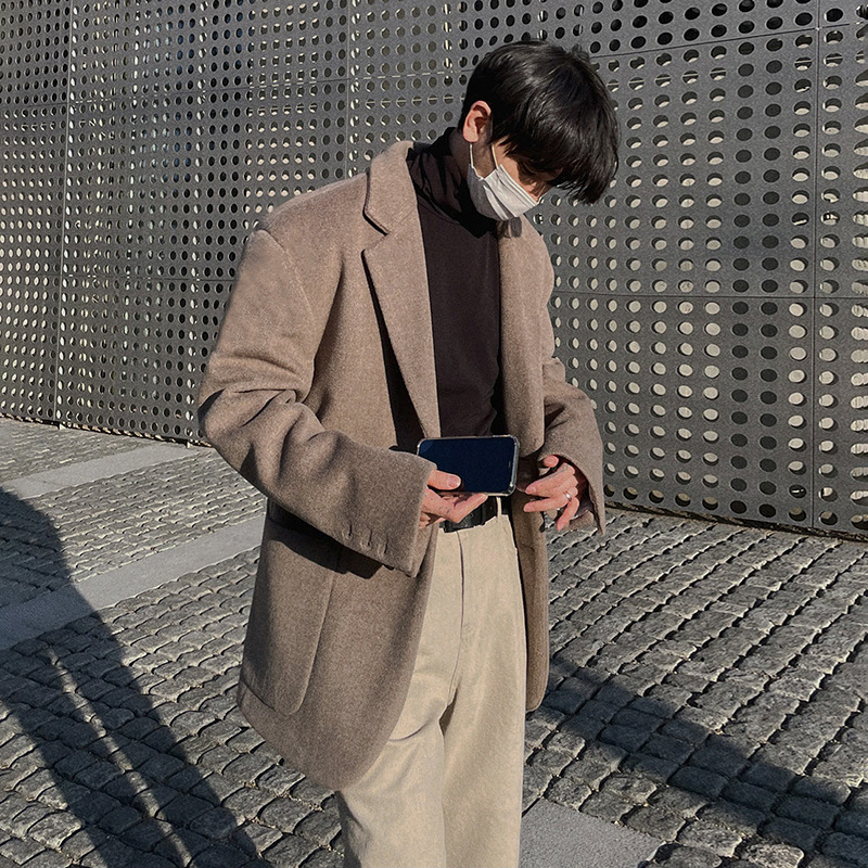 秋冬の新型男性の軽熟風カジュアルスーツの男性シングル西潮牌香港風韓国版ファッションコート2025年潮