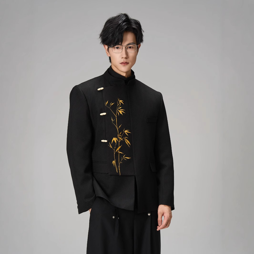 新中国式金竹刺繍スタンドカラーのデザイン感のあるスーツのコートは男女同じタイプの中山服のスーツです。