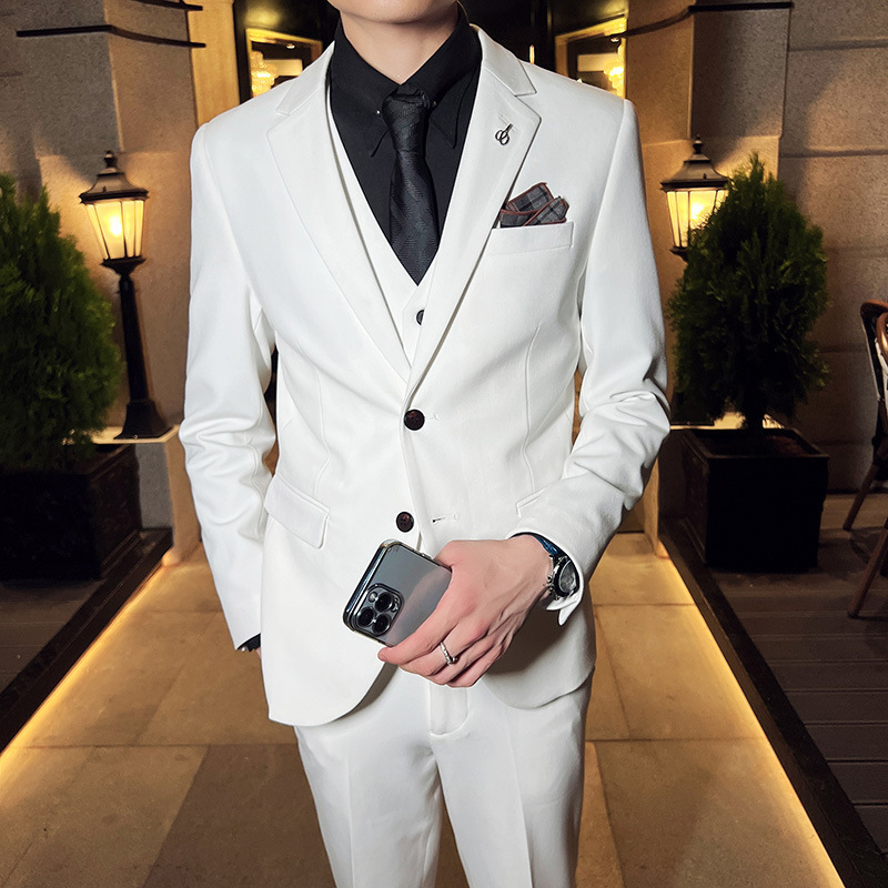 Douyin 無地メンズドレープスーツビジネススリーピースフラットラペルカジュアルスーツとズボン大きいサイズスーツ