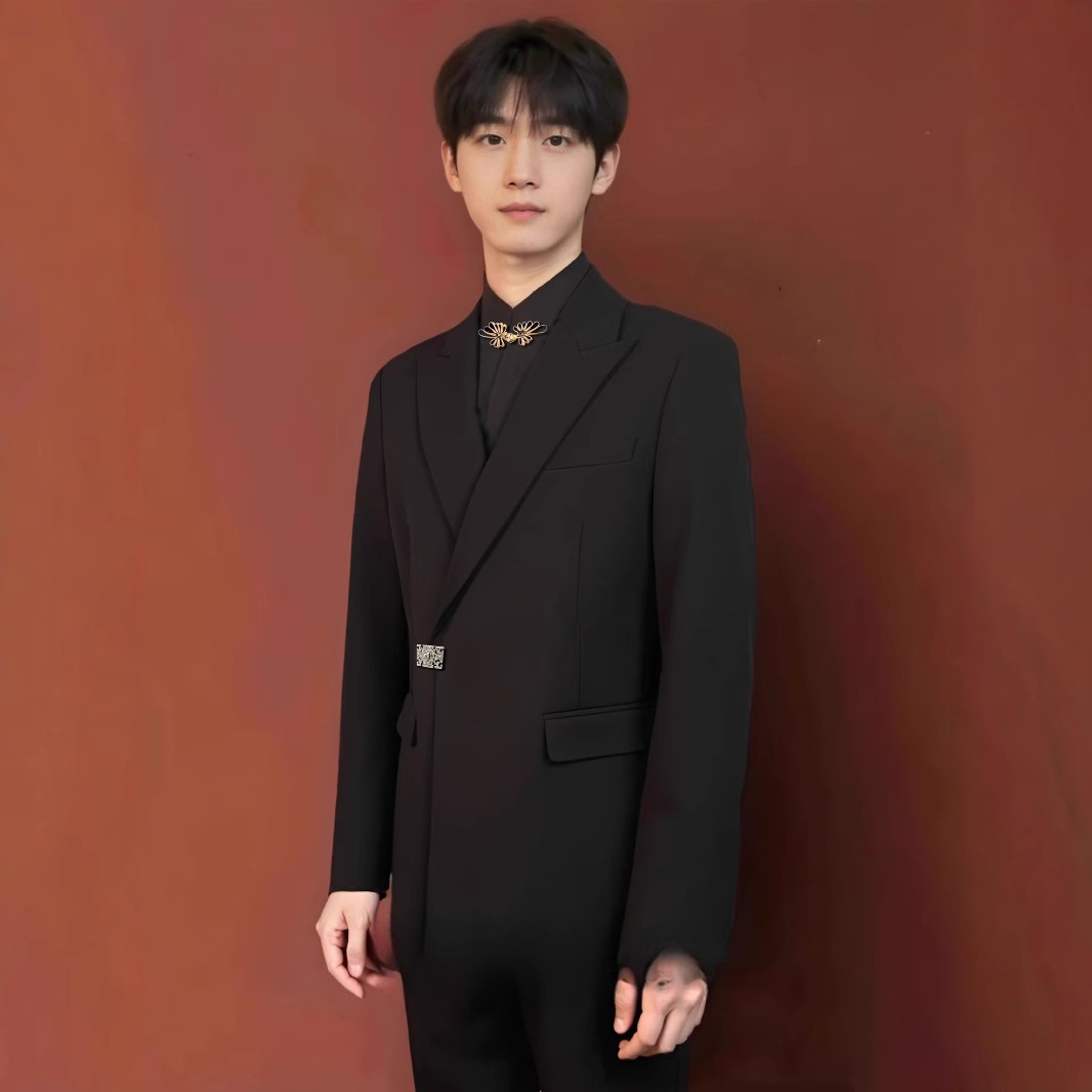 黒崎DK洋服ユニフォームスーツ二粒バックル学院风ブラック学生高级感スーツフォーマルスーツ男