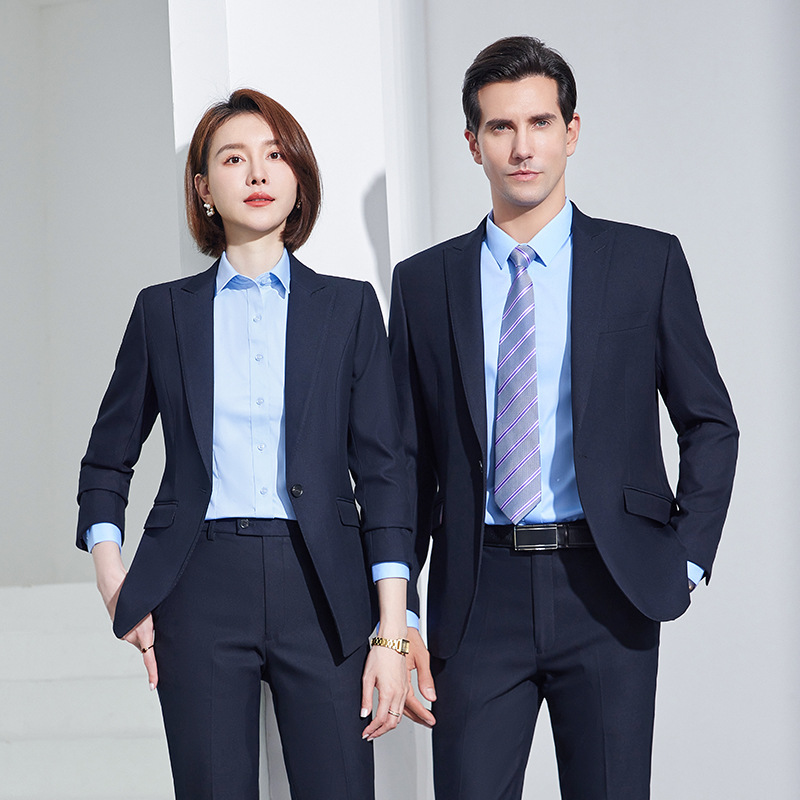 新型職業服セットメーカー弾力紺色男性スーツセット男女士商通勤OL正装卸売り
