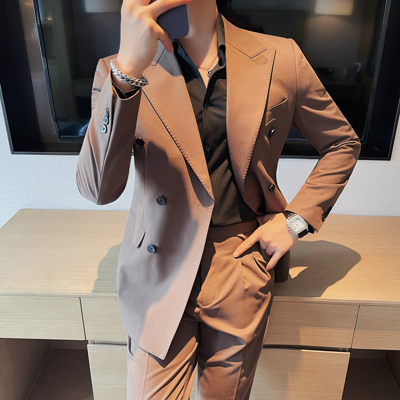 メンズコート韓国風ガンラペルスーツ秋冬新作スリムダブルブレストビジネスカジュアルスーツ
