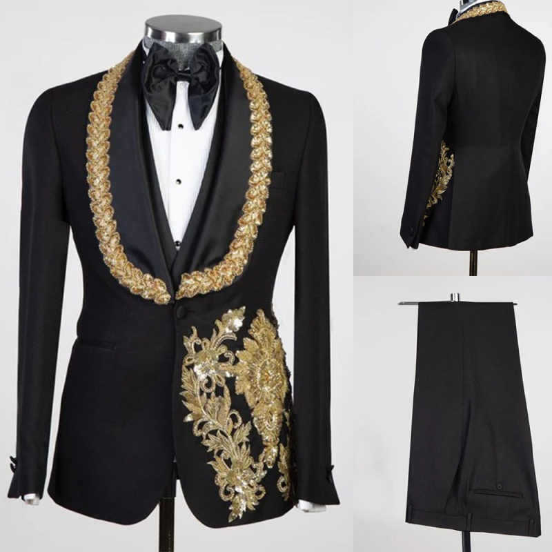 高級アップリケメンズウェディングドレススーツクラシックシングルボタングリーンフルーツカラーゲスト新郎ジャケットスーツ2ピース