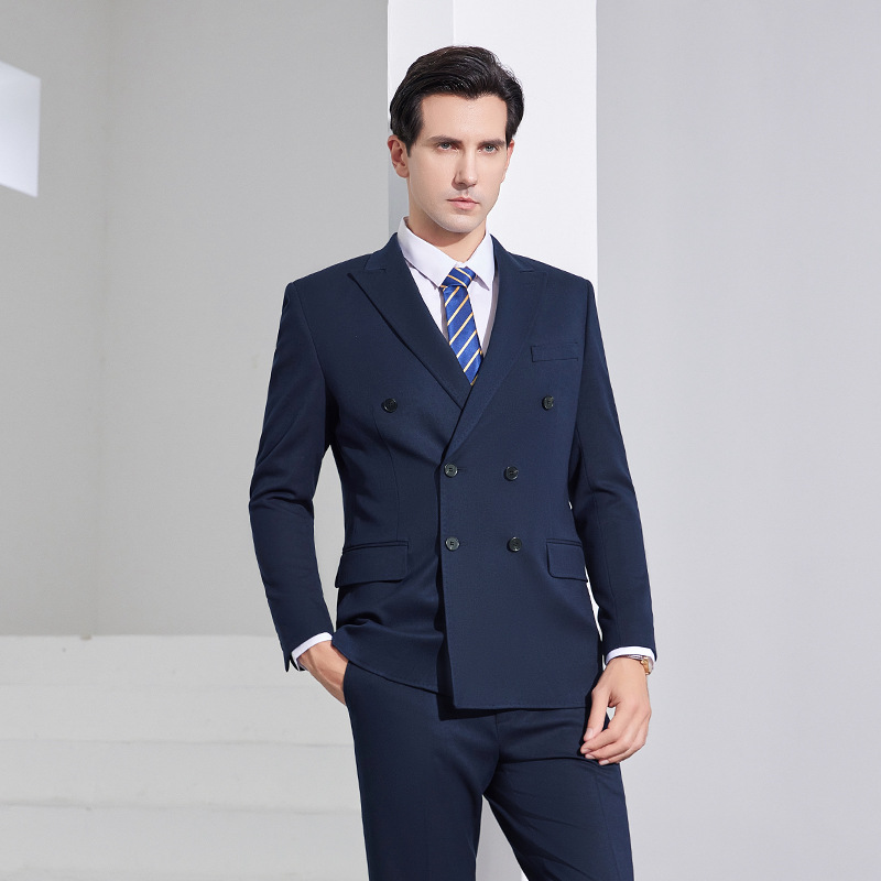 珠辺双列ボタンスーツ男性ビジネス正装公務員教師職業装ウールスーツ工服