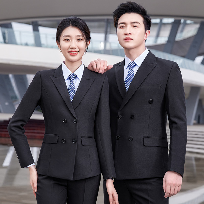 職業正装男女同型ダブルスーツ不動産販売4S店3点セット濃い灰色スーツ工