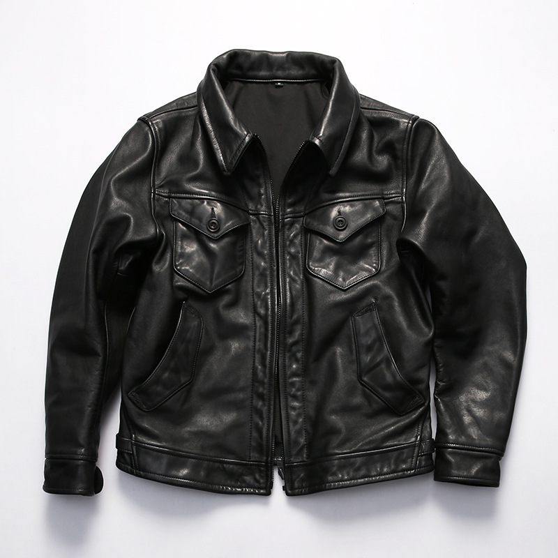 RL徳華メンドーサ本革ジャケット男性襟付き機関車輸入全粒面無塗水染小牛皮皮衣