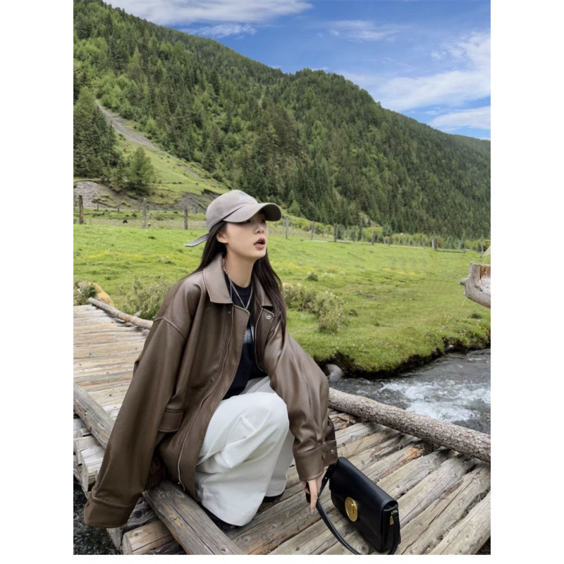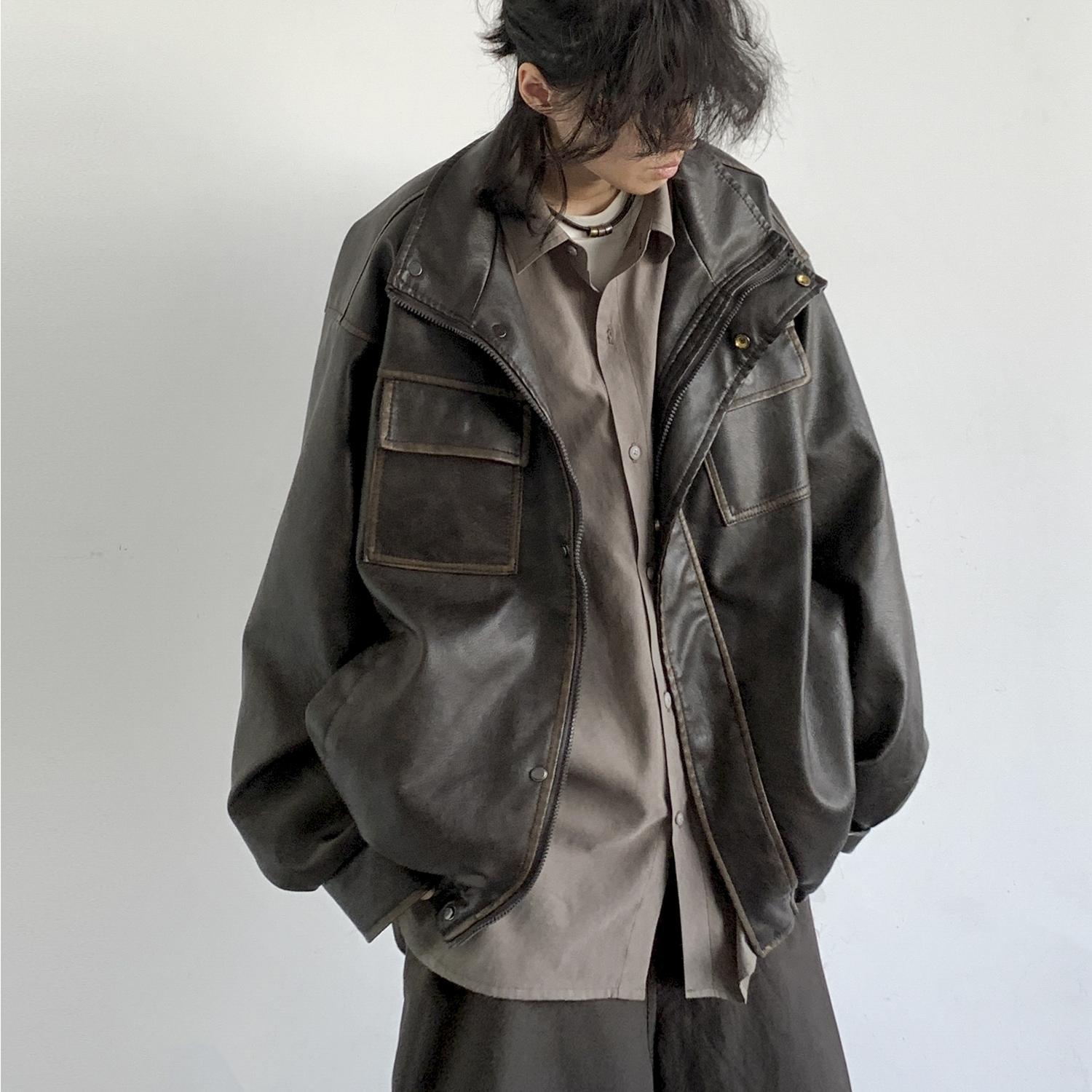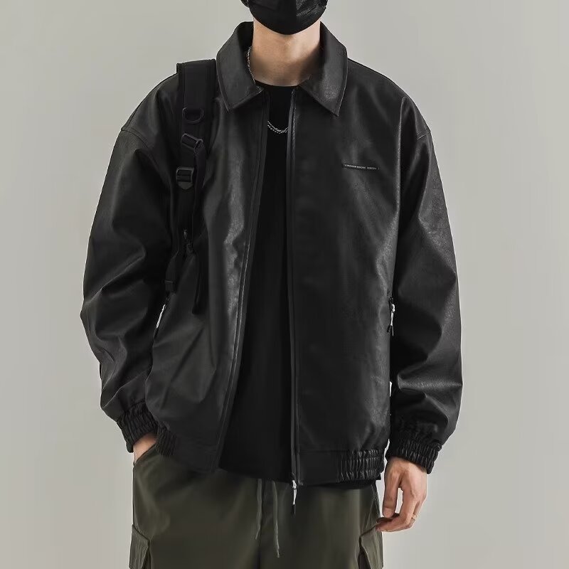 儒孟アメリカ復古PU機関車皮衣男女春秋新高級感痞帅コート2024年革ジャケット