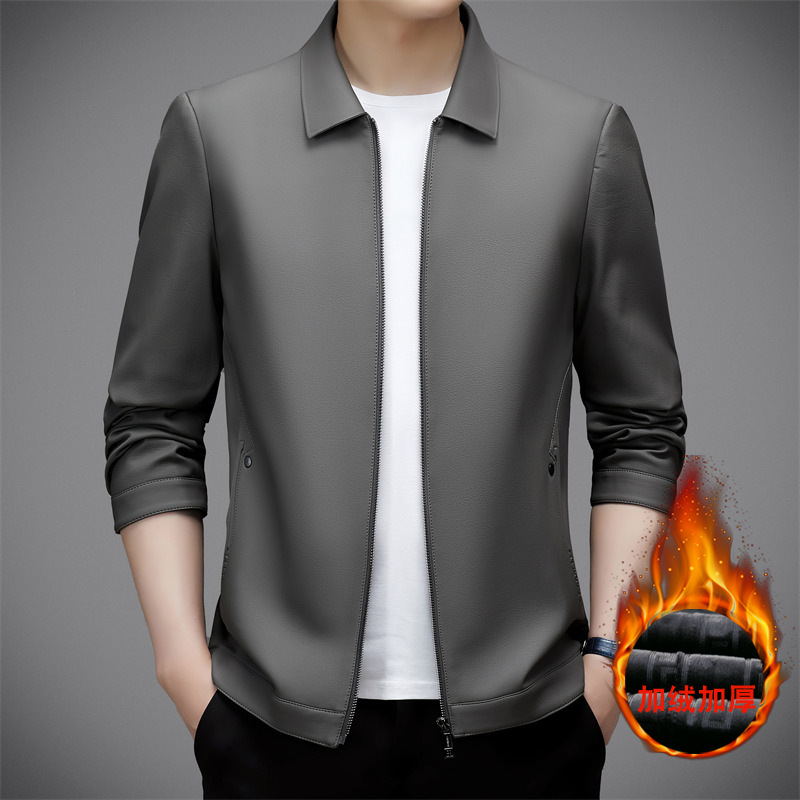 恒源祥ソフトレザージャケット メンズ 秋冬 裏起毛 厚手 レザージャケット 中高年 お父さん向け 羊革コート