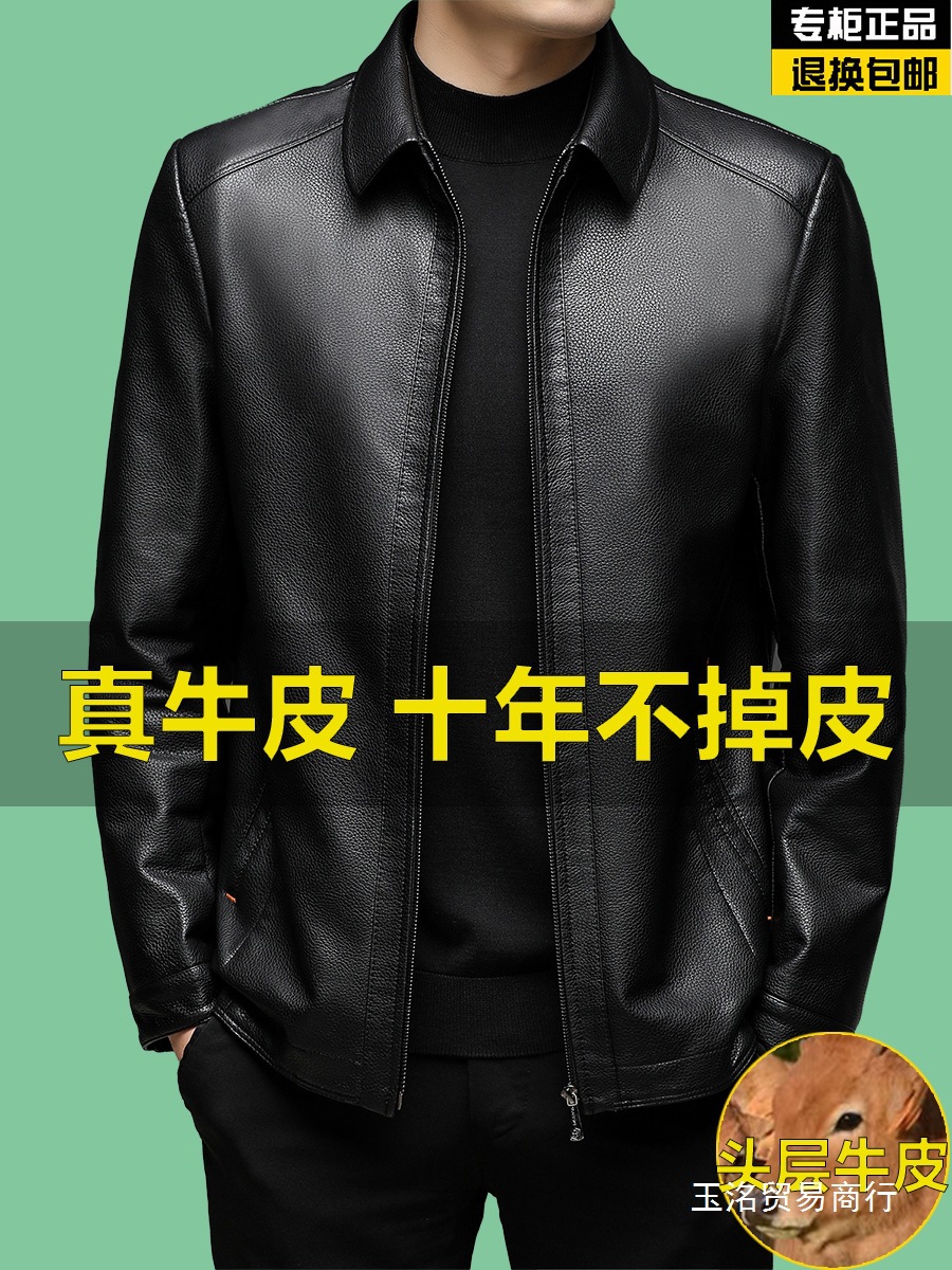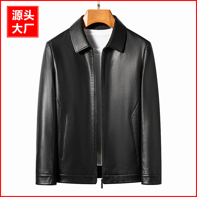 Haining レザージャケットメンズ春と秋の新しいお父さん着用ベルベット肥厚中高年牛革ソフトレザージャケット卸売