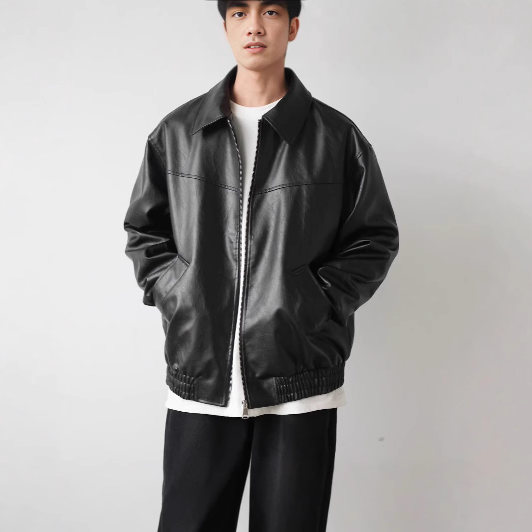 ファッション小众シンプル高级感PUレザーコートins男レトロかっこいい机械服カジュアルジャケット上着