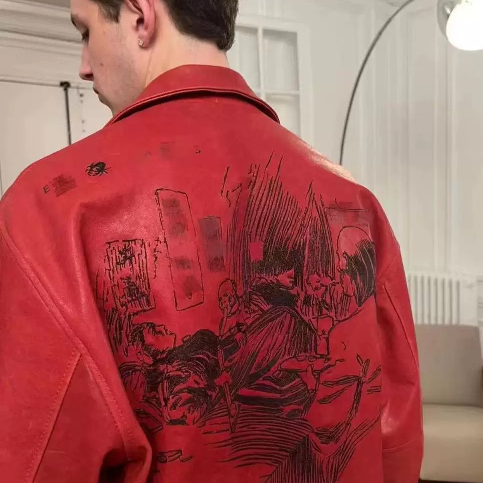現品新品ERD憂鬱な富二代定染大煙染色cleanfit潮ins革衣革ジャケット