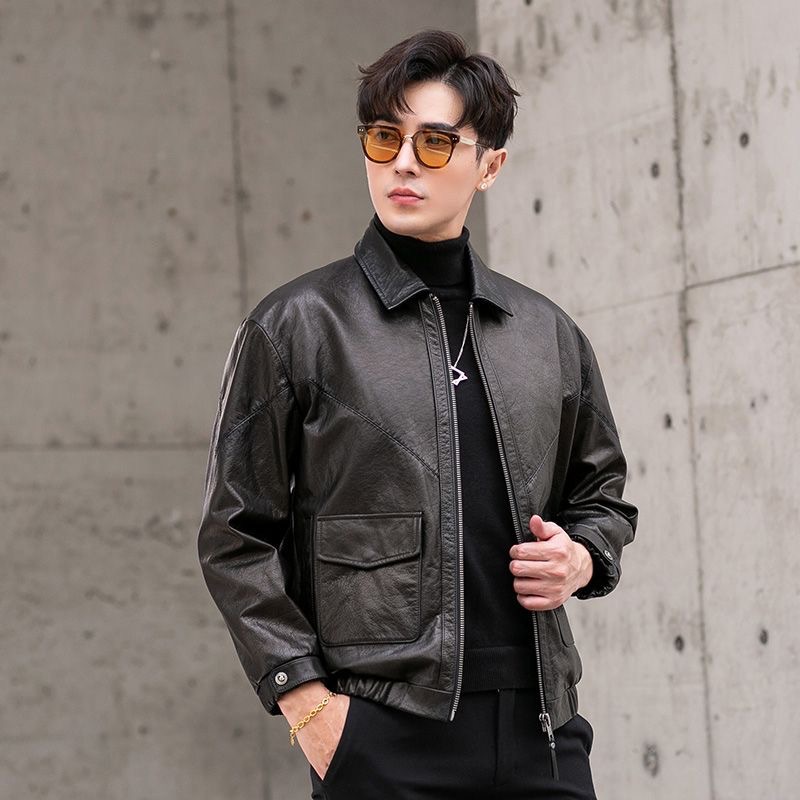 新しいスタイルのレザージャケットメンズショートスリムオートバイレザージャケット若い男性カジュアルラペル韓国スタイルのトレンディなジャケット男性