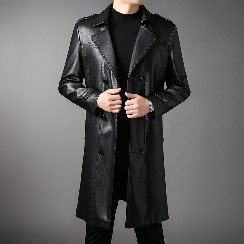 越境皮衣2023秋冬男の新型PU皮衣の中の長いタイプの男性のコートの中年の紳士服のコートの皮のジャケット