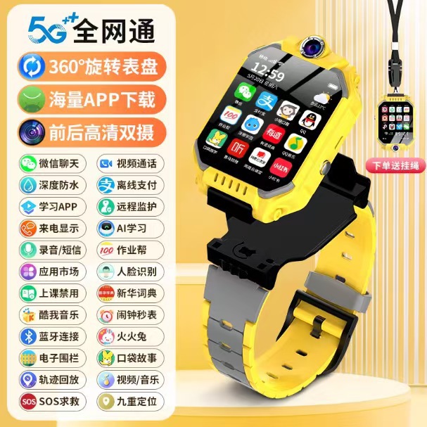 5G対応スマート大画面電話腕時計、SIMカード挿入可能、多機能モバイル決済、ビデオ通話、位置情報機能搭載、子供向け