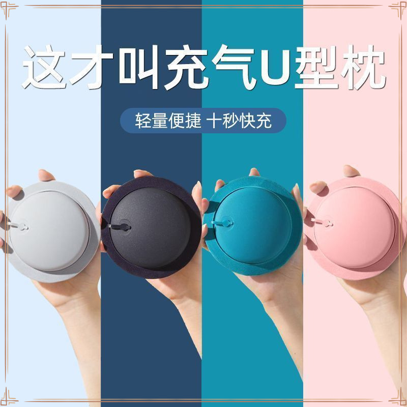 インフレータブルU字型枕 プッシュ式インフレータブル折りたたみ式圧縮枕 車や電車の旅行用ネックピロー ポータブル