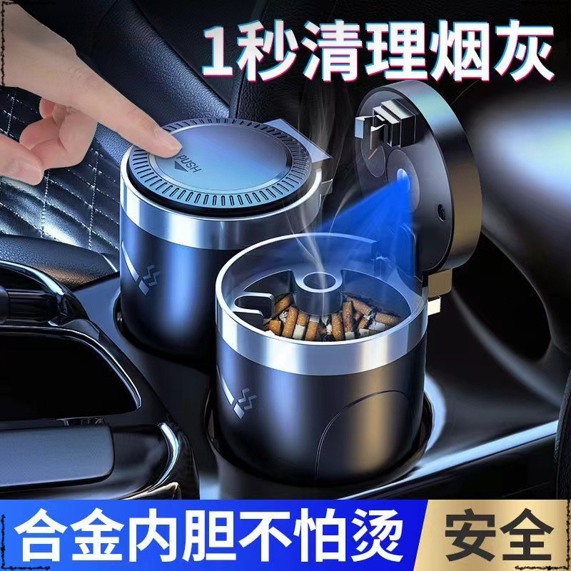 Shunfengshun 車用灰皿、多機能金属ライナー、クリエイティブなパーソナライズされたプレスオープン蓋、車内オフィス用ユニバーサル