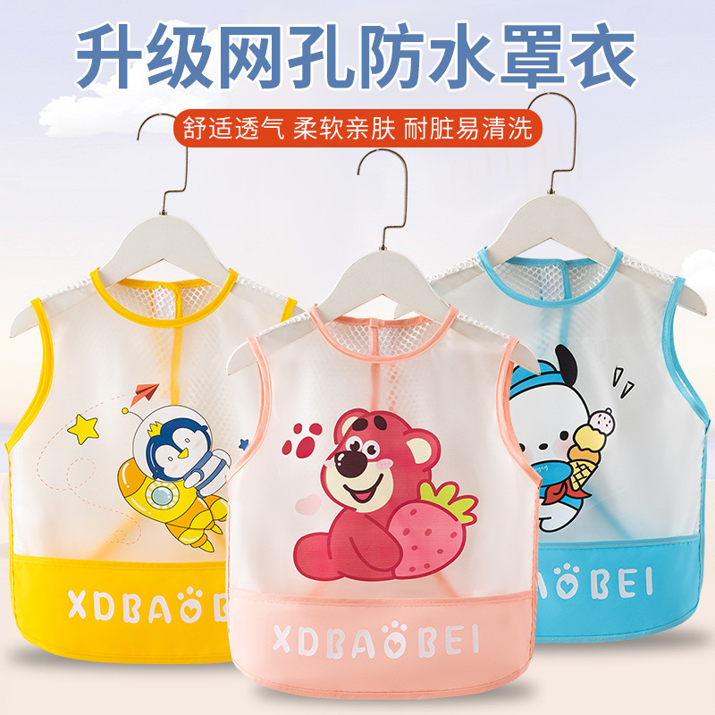 ベビーカバーオール、子供用食事服、防水逆着用、子供用男女兼用ノースリーブベビー防汚エプロン、薄手
